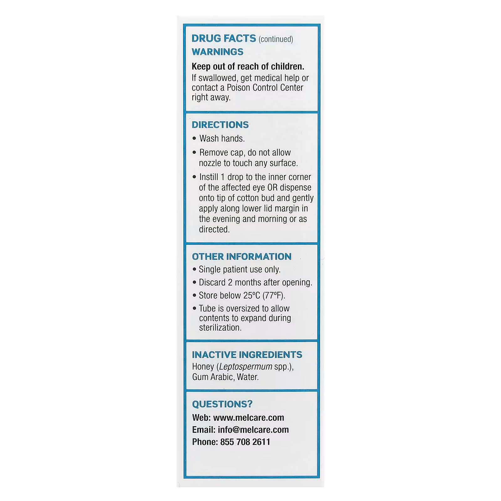- For any reaction other than the transient stinging and redness, cease use and contact your eye care professional.